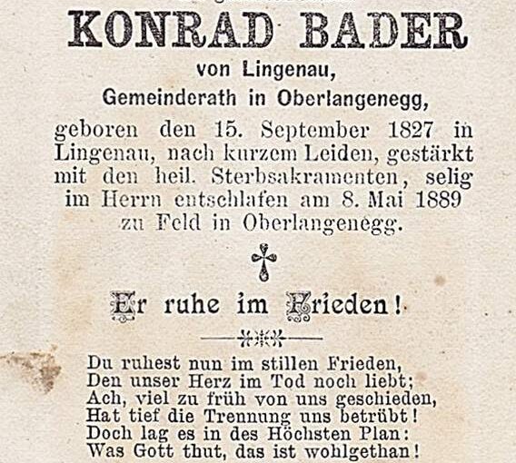 Bader Konrad, 15.9.1827 Lingenau – 8.5.1889 Langenegg
