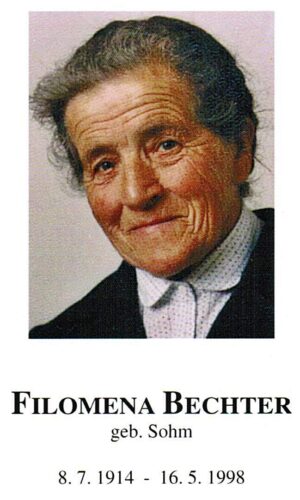 Vorheriges BildNächstes Bild Bechter Filomena, geb. Sohm, 8.7.1914 Alberschwende – 16.5.1998 Hittisau