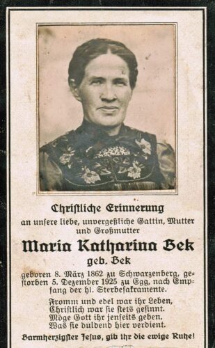 Vorheriges BildNächstes Bild Beck Maria Katharina, geb. Beck, 8.3.1962 Schwarzenberg – 5.12.1925 Andelsbuch