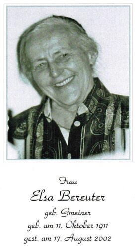 Vorheriges BildNächstes Bild Bereuter Elsa, geb. Gmeiner, verw. Stadelmann, 11.10.1911 – 17.8.2002 Alberschwende