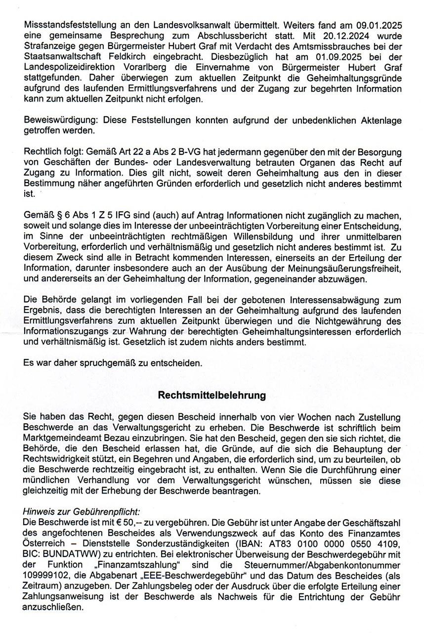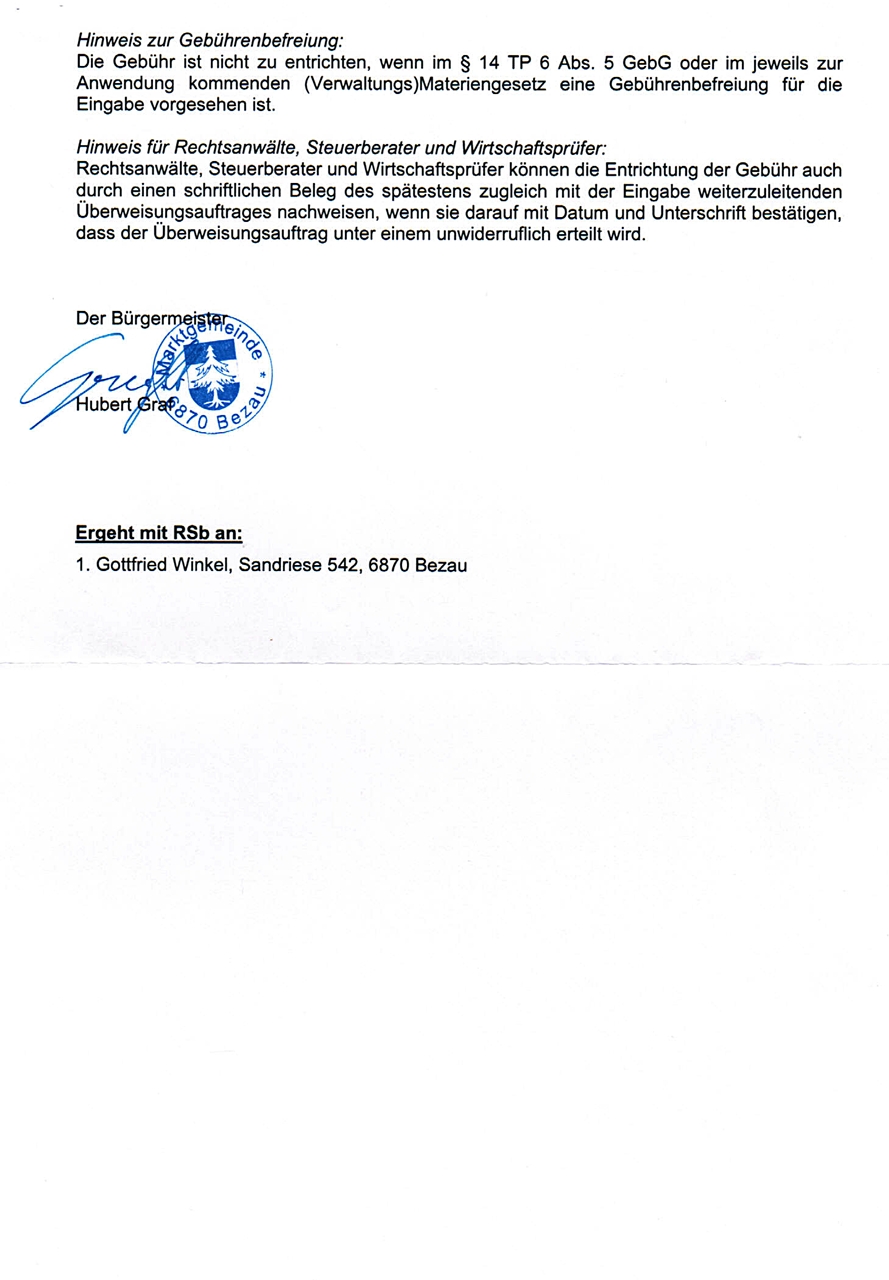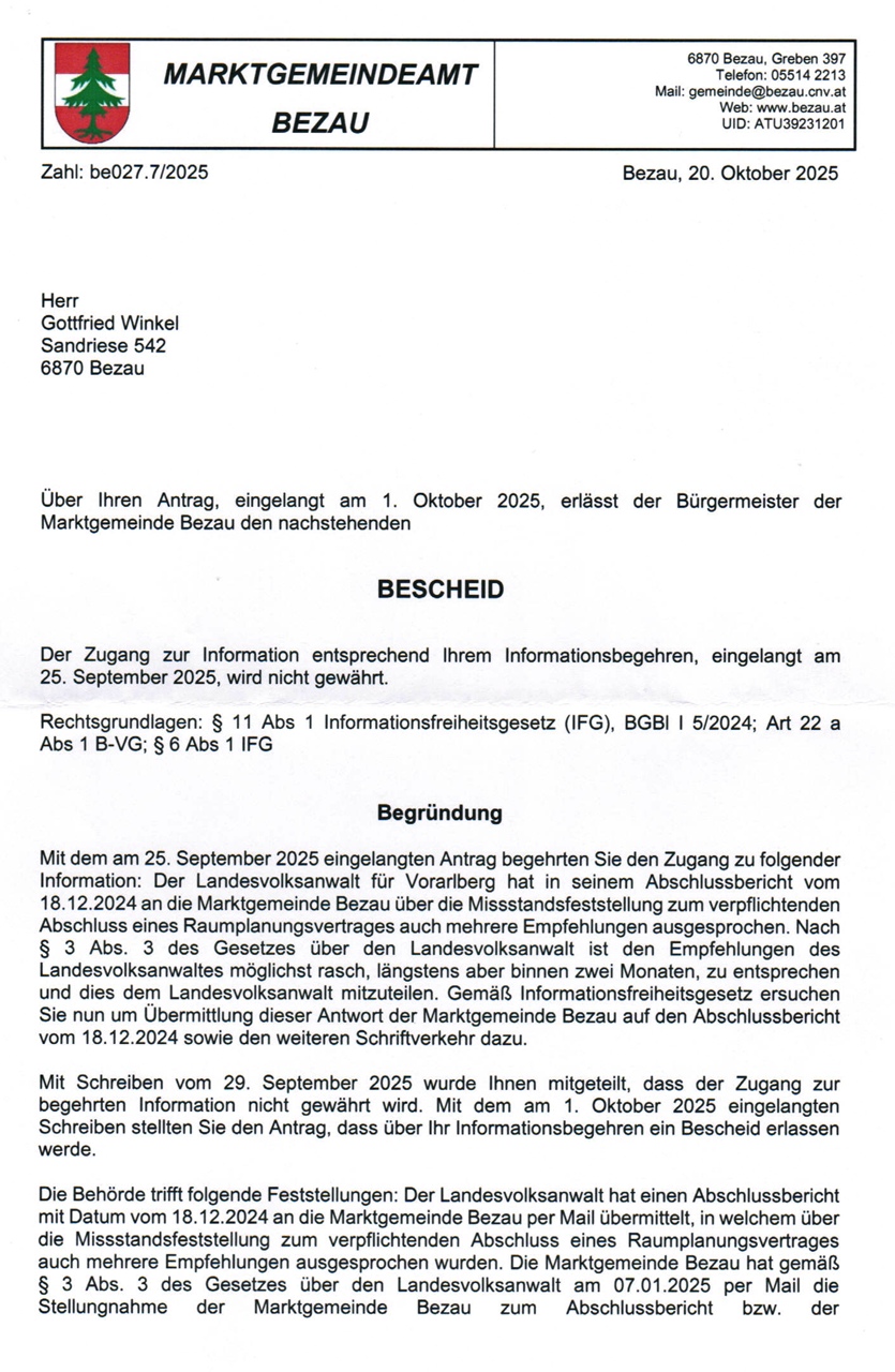 Bescheid des Marktgemeindeamtes Bezau vom 20.10.2025