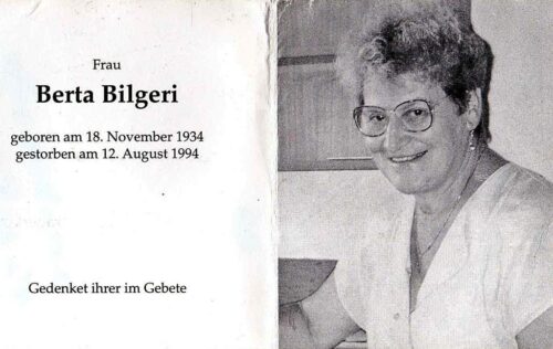 Vorheriges BildNächstes Bild Bilgeri Berta, geb. Koeberle, 18.11.1934 Burgberg, Allgaeu – 12.8.1994 Alberschwende