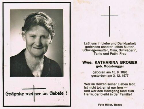 Vorheriges BildNächstes Bild Broger Katharina, geb. Moosbrugger, 15.9.1898 Bizau – 3.12.1977 Schnepfau