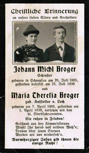Vorheriges BildNächstes Bild Broger Maria Theresia, geb. Hofstetter, 7.4.1868 Lech – 1.4.1938 Schnepfau