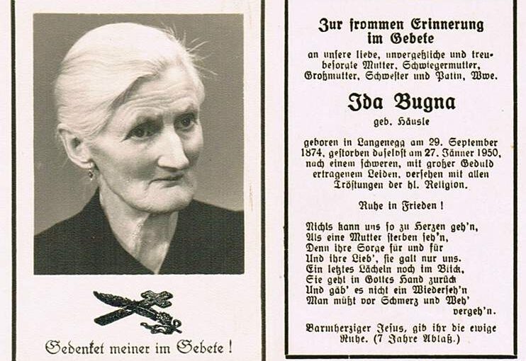 Bugna Ida, geb. Haeusle, 29.9.1874 – 27.1.1950 Langenegg