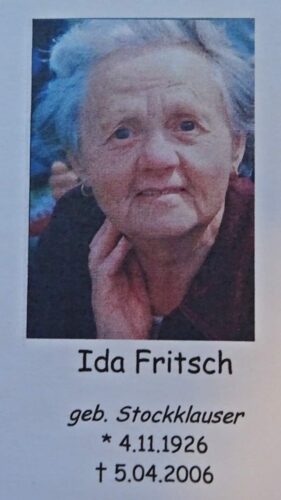 Vorheriges BildNächstes Bild Fritsch Ida, geb. Stockklauser, 4.11.1926 Riefensberg – 5.4.2006 Wolfurt
