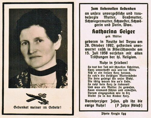 Vorheriges BildNächstes Bild Geiger Katharina, geb. Mueller, 28.10.1892 Reuthe – 15.7.1958 Alberschwende