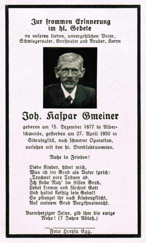 Vorheriges BildNächstes Bild Gmeiner Johann Kaspar, 15.12.1877 Alberschwende – 27.4.1950 Sibratsgfaell