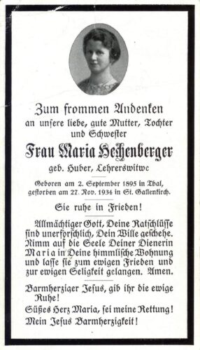 Vorheriges BildNächstes Bild Hechenberger Maria, geb Huber, 2.9.1895 Thal – 27.11.1934 St.Gallenkirch