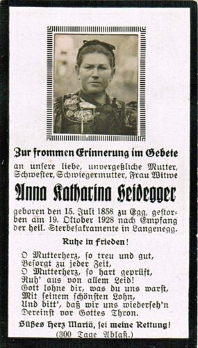 Vorheriges BildNächstes Bild Heidegger Anna Katharina, geb. Meusburger, 15.7.1858 Egg – 19.10.1928 Langenegg