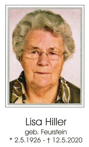 Vorheriges BildNächstes Bild Hiller Elisabeth Lisa, geb. Feurstein, 2.5.1926 Mellau – 12.5.2020 Feldkirch