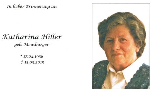Vorheriges BildNächstes Bild Hiller Katharina, geb. Meusburger, 17.4.1938 Bizau – 13.3.2015 Alberschwende