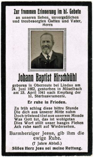 Vorheriges BildNächstes Bild Hirschbuehl Johann Baptist, 24.6.1862 Oberreute, D – 23.4.1941 Alberschwende