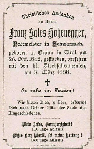 Vorheriges BildNächstes Bild Hohenegger Franz Sales, 26.10.1842 Graun – 3.3.1888 Bezau und Schwarzach