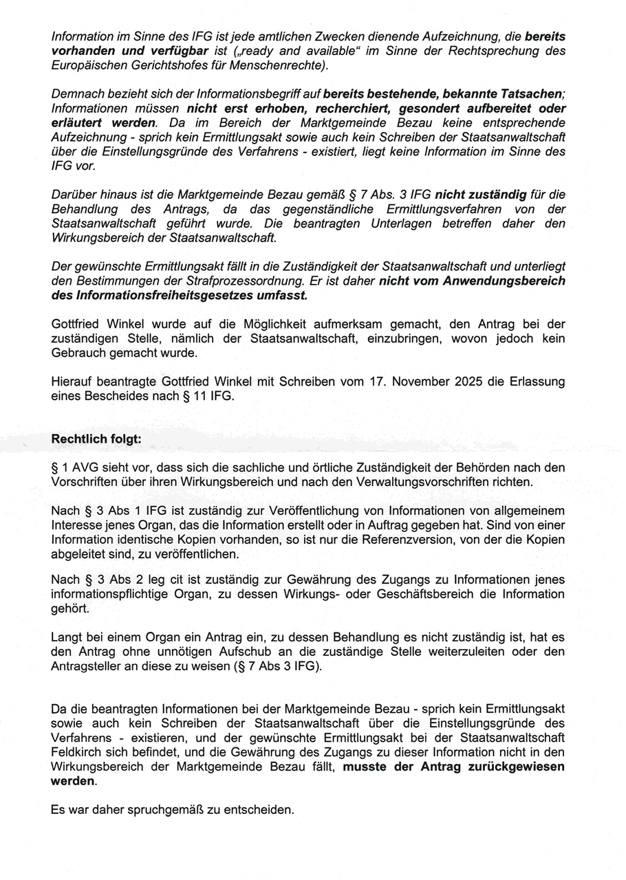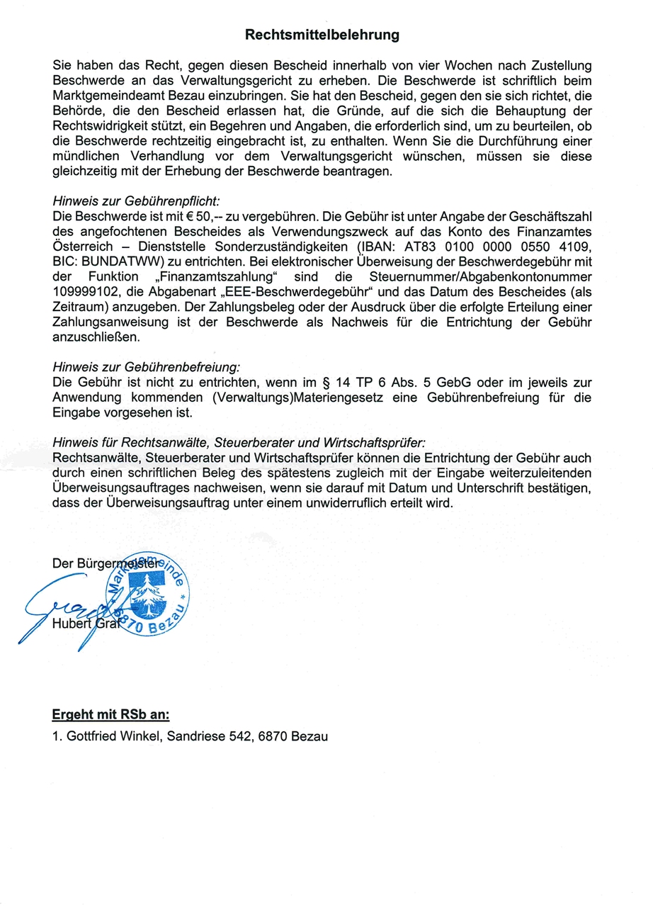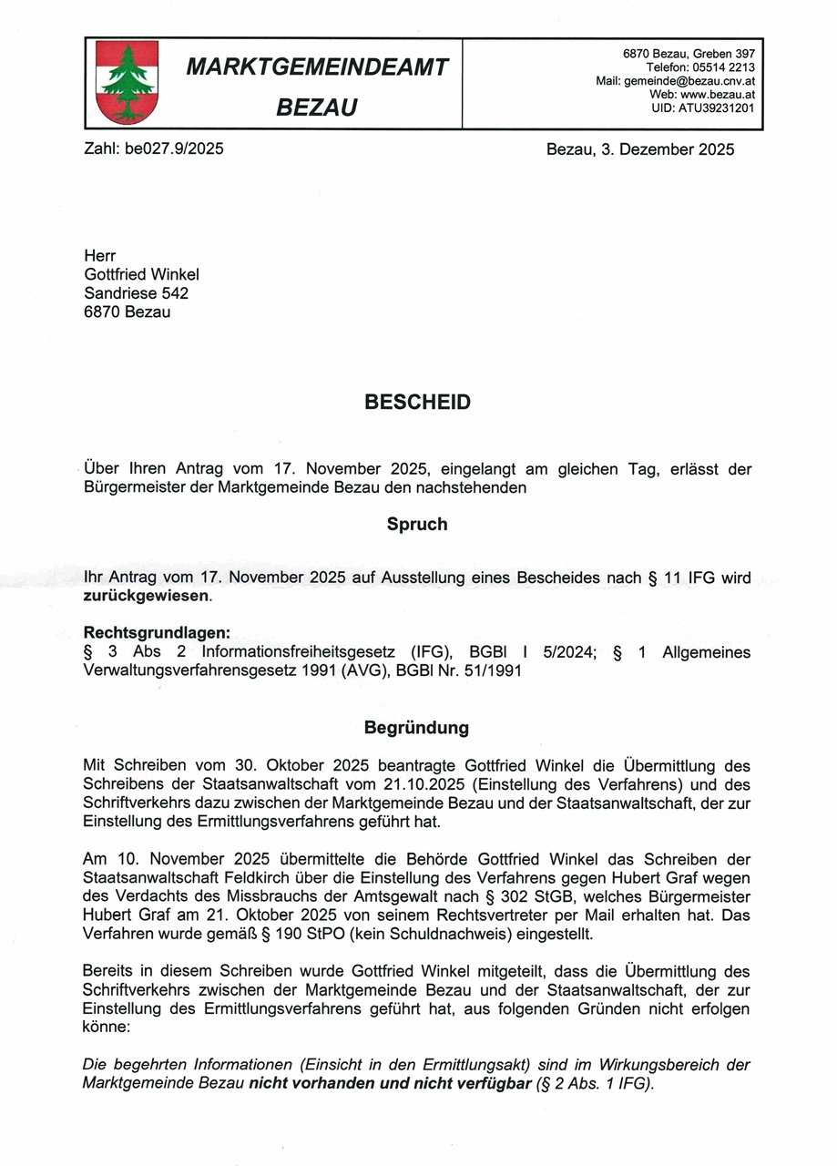 Bescheid des Marktgemeindeamtes Bezau vom 3.12.2025