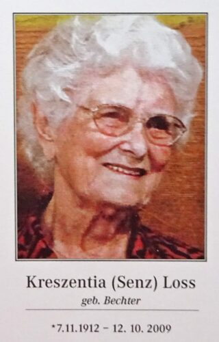 Vorheriges BildNächstes Bild Loos Kreszentia, geb. Bechter, 7.11.1912 Sibratsgfaell – 12.10.2009 Lingenau