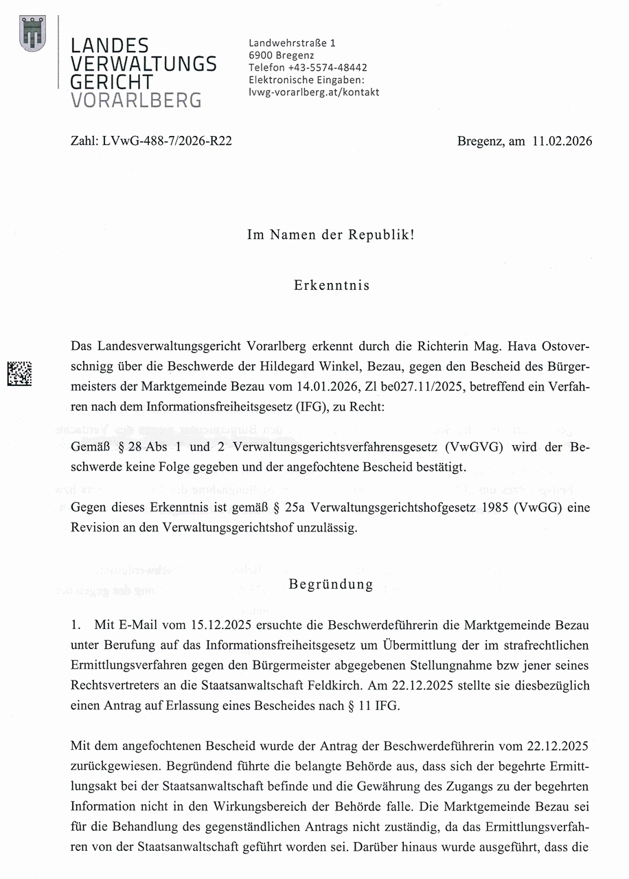 Landesverwaltungsgericht Vorarlberg – Erkenntnis vom 11.2.2026
