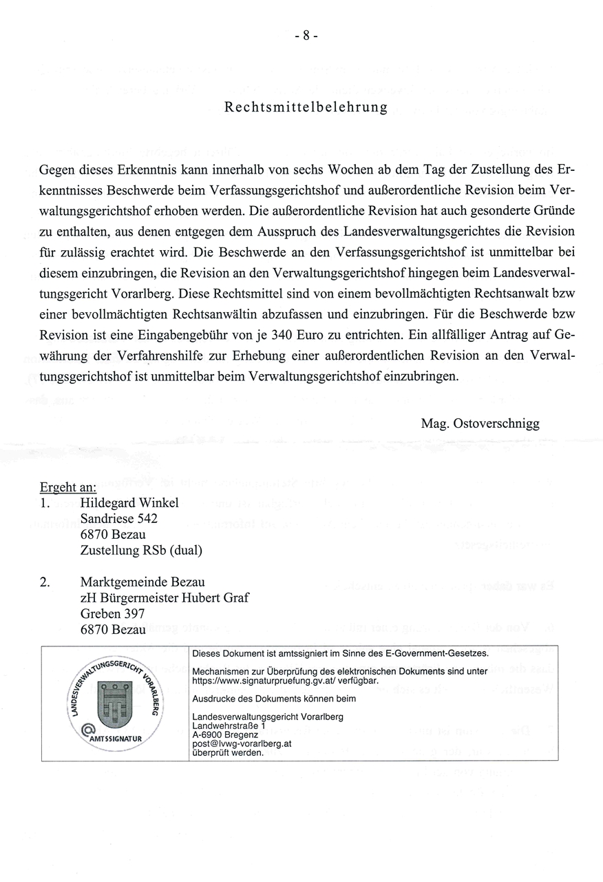 LVG Vorarlberg – Erkenntnis