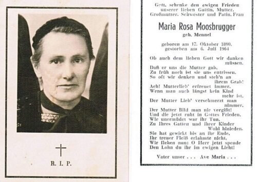 Vorheriges BildNächstes Bild Moosbrugger Maria Rosa, geb. Mennel, 17.10.1890 Lingenau – 6.7.1964 Bezau