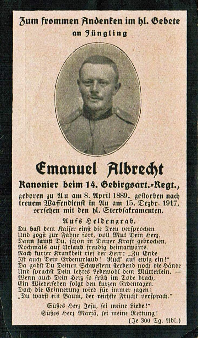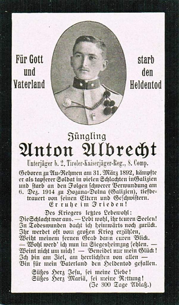 DANKE allen – ganz besonders Friedrich Juen – die Sterbebilder für diese Sammlung zur Verfügung gestellt haben! Wenn Sie mehr zu diesen Personen wissen möchten oder einen Fehler entdeckt haben, schreiben Sie ein E-Mail an: