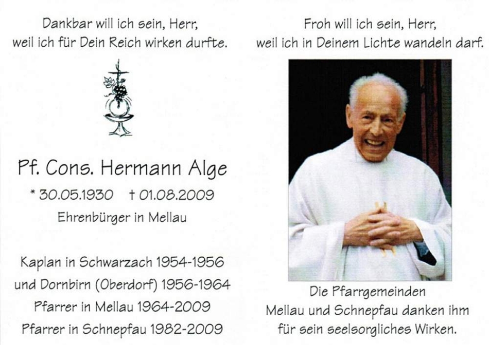 Hier finden Sie derzeit (Stand 10.12.2025) rund 13.050 Sterbebilder oder Bilder von Verstorbenen (hauptsächlich aus dem Bregenzerwald).