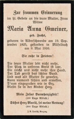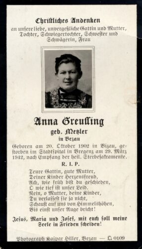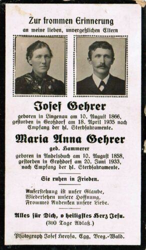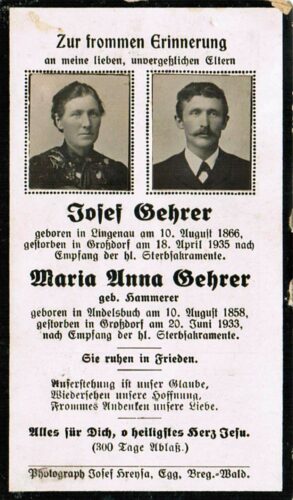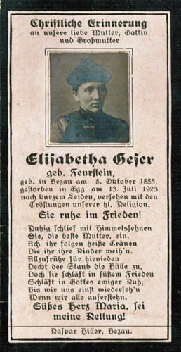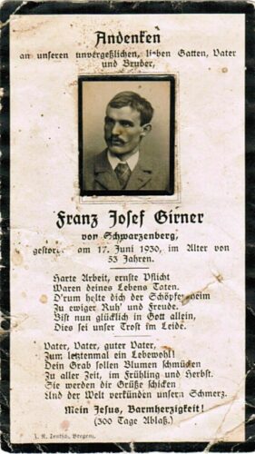 Familie Broseles (Fröis) in Schönenbach um 1920