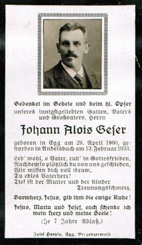 Schulklasse Bezau 1933 III. Klasse – Jahrgang 1921 bis 1923
