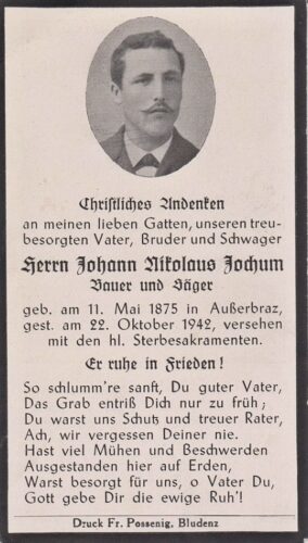 Familie Broseles (Fröis) in Schönenbach um 1920