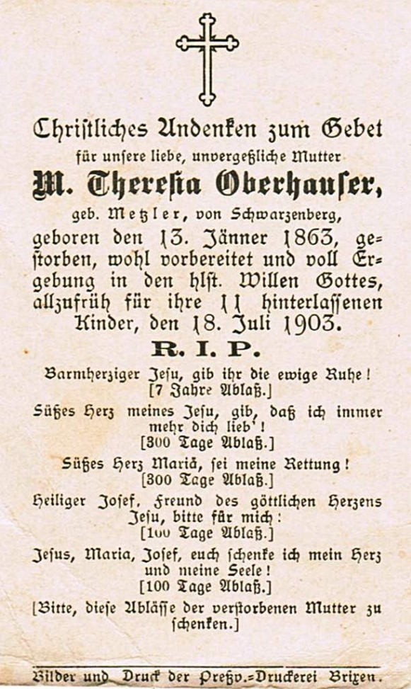 Familie Broseles (Fröis) in Schönenbach um 1920