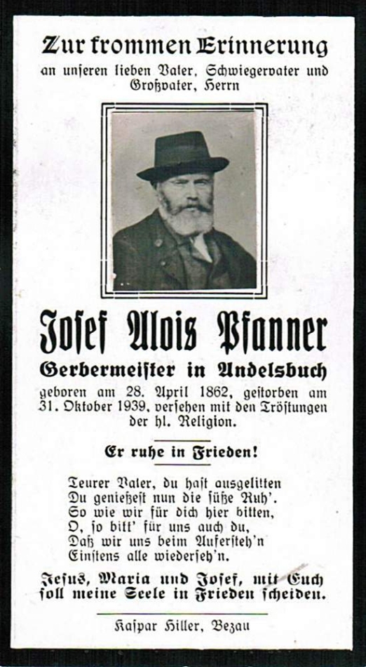 Sterbebilder P Pfanner Adolf 15.05.1913 gest. 30.06.2004 Dorf 181 Zu allen Sterbebildern Sterbebilder A bis Z
