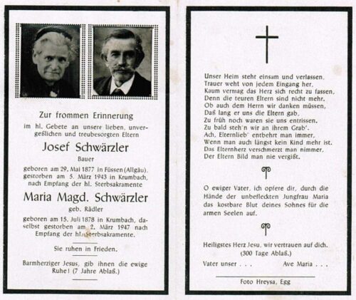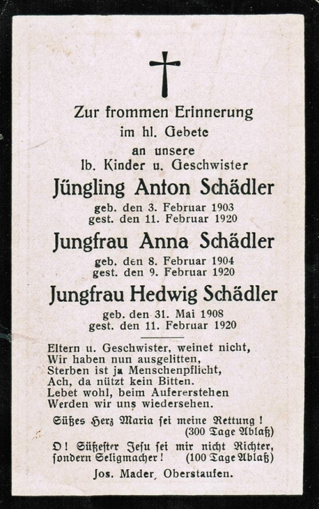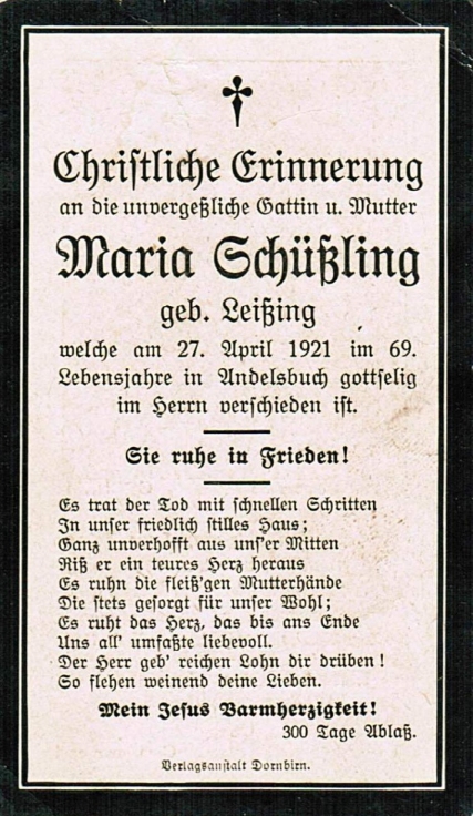 Familie Broseles (Fröis) in Schönenbach um 1920