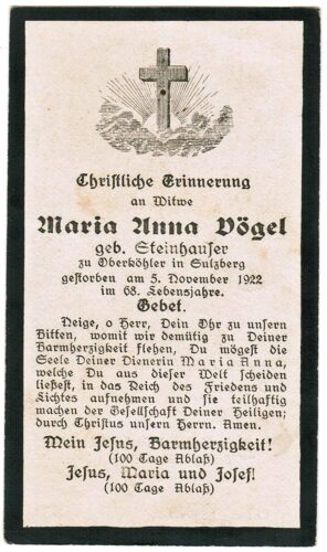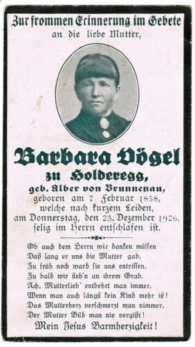 Familie Broseles (Fröis) in Schönenbach um 1920