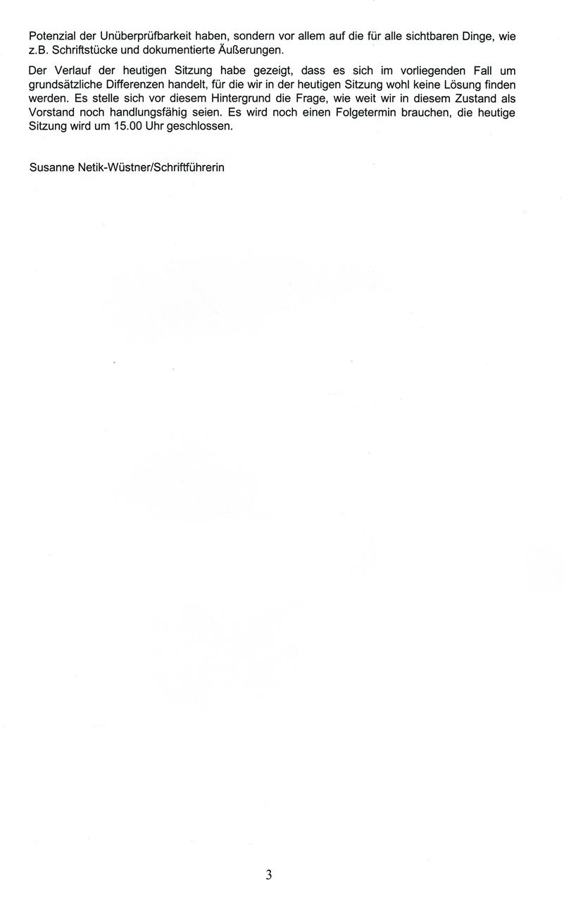 Ich gehe davon aus, dass unser Obmann Oskar – und nebenbei gesagt Zuständiger für die Diensteinteilung! – baldmöglichst eine Vorstandssitzung einberufen wird, wo u.a. auch über diesen unerträglichen Zustand beraten wird. Sonst wird das und vieles andere jedenfalls auch ein Thema für die nächste Jahreshauptversammlung.