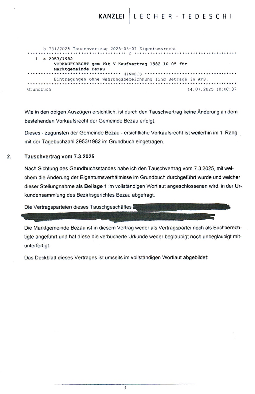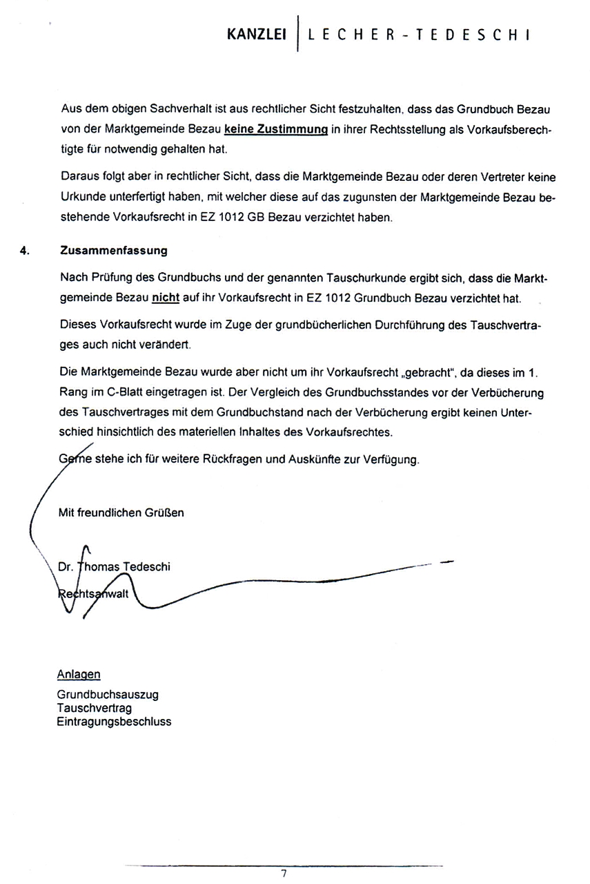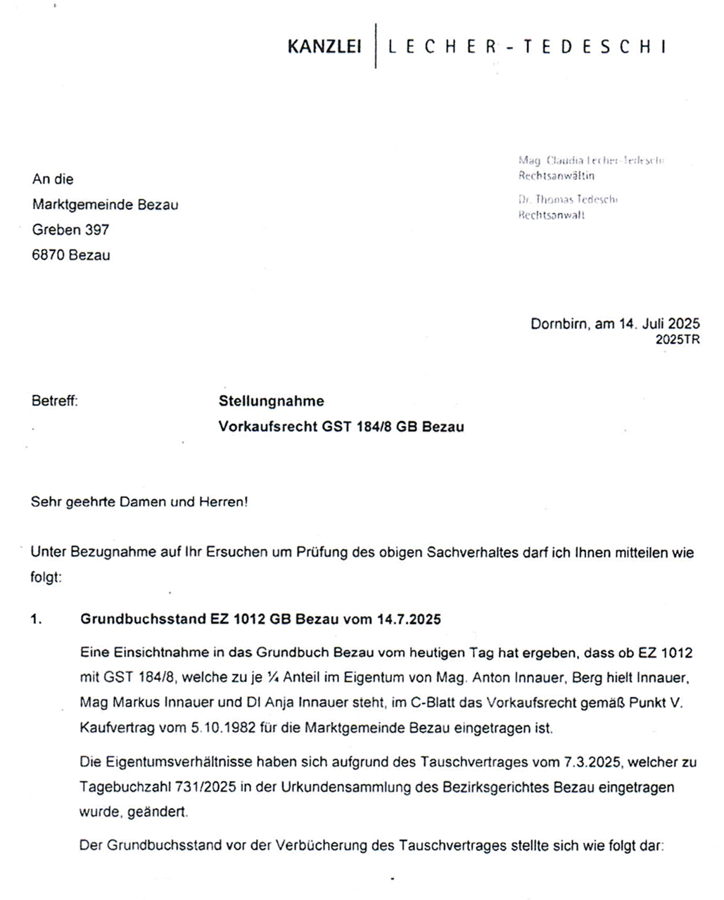 Stellungnahme Dr. Tedeschi – Vorkaufsrecht GST 184/8 GB Bezau