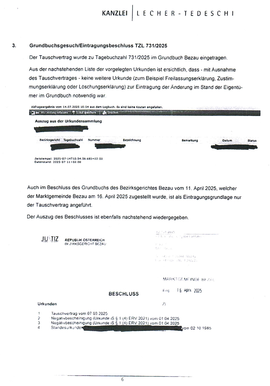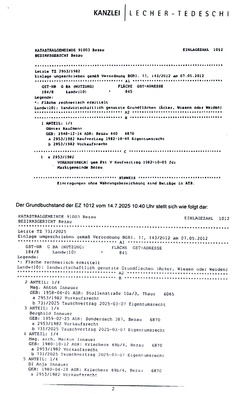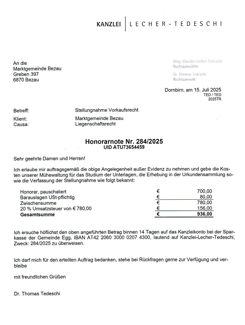 Stellungnahme Dr. Tedeschi – Vorkaufsrecht GST 184/8 GB Bezau