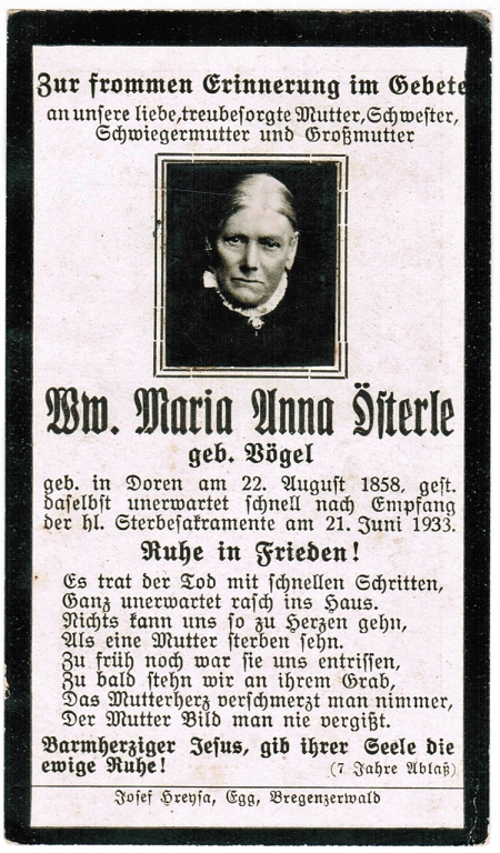 Familie Broseles (Fröis) in Schönenbach um 1920